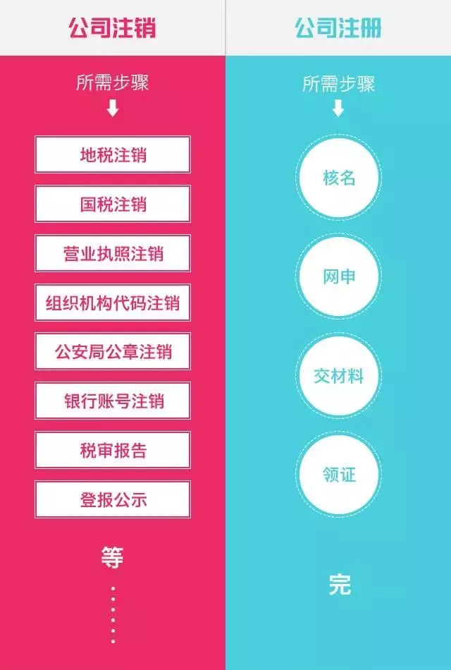 先来看看公司注销和公司注册的流程图!你就知道为什么注销公司比注册公司难了!
