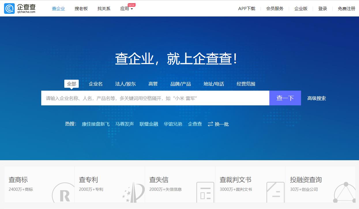 (1)企查查 网址:https://www.qichacha.com/(可点击链接访问)