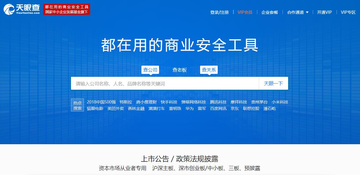 天眼查和企查查一样,是第三方的企业信息查询网站,数据同样来自国家企业信用公示系统上的公开数据。