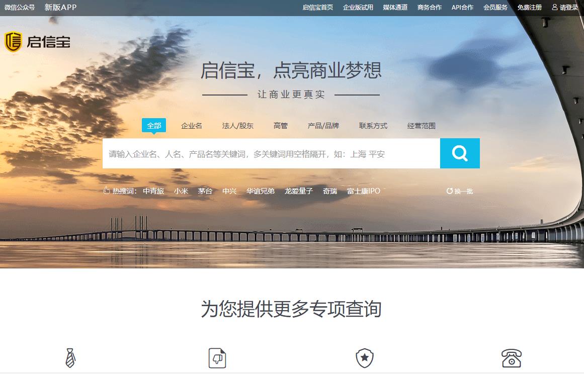 (3)启信宝 网址:http://www.qixin.com/(可点击链接访问)