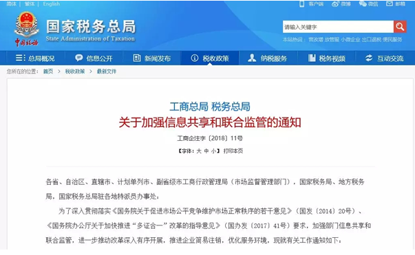 但是对于监管上,却是由工商局和税务局一起,在加强信息共享和联合监管的基础上进行的了。